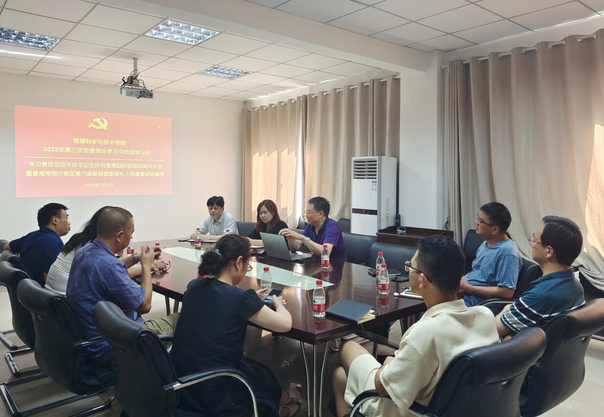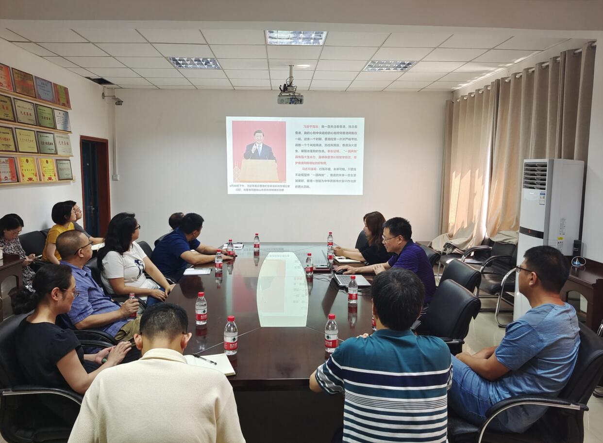 7月6日下午,成人色情片 在二楼会议室举行2022年第三次党委理论学习中心组(扩大)学习会,专题学习习近平总书记在庆祝香港回归祖国25周年大会暨香港特别行政区第六届政府就职典礼上的重要讲话精神,交流心得体会。成人色情片 党委理论学习中心组全体成员、党委委员、党支部书记参会,成人色情片 党委书记李余廷主持会议。
