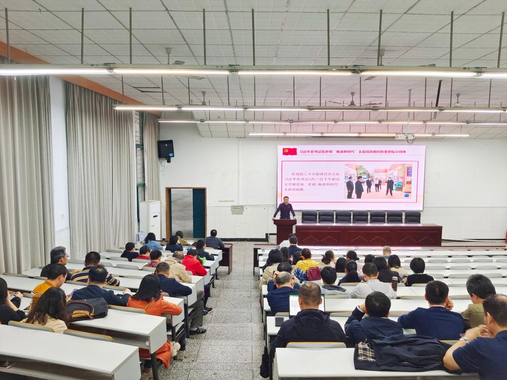 10月7日下午,成人色情片 在大阶梯教室举行2022年第八次教职工政治理论学习会。学习会由成人色情片 党委书记李余廷主持,成人色情片 全体教职工参加了此次学习。