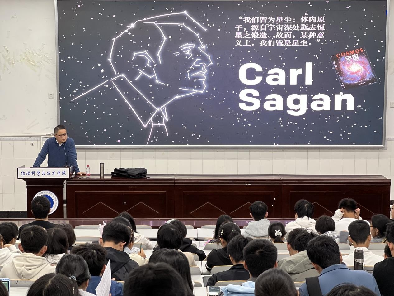 讲座从卡尔·萨根的《宇宙》引入,杨老师引导同学们思考物理学科所承载的广阔视野与人文精神。他提醒大家警惕中学阶段“过度训练”可能导致的思维固化,并深入解读了物理观念、科学思维、实验探究、科学态度与责任这四大核心素养。