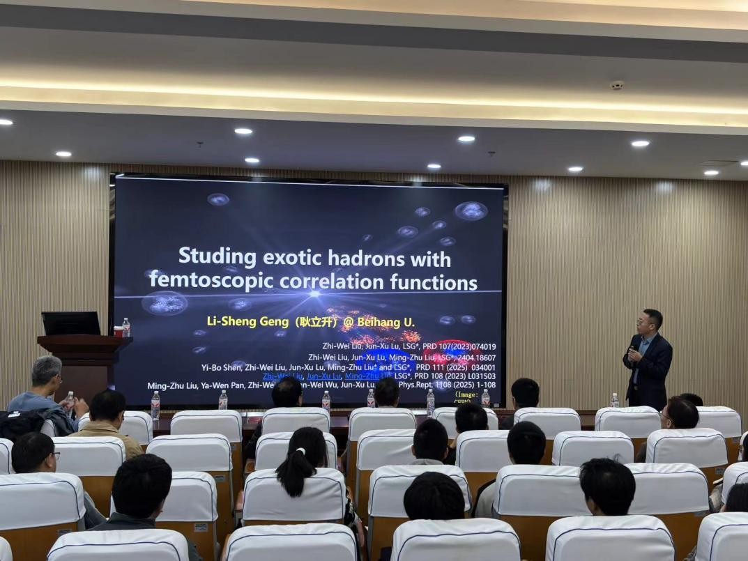 2025年11月10日,北京航空航天大学博士生导师、国家级人才耿立升教授应邀来成人色情片进行学术交流,并为成人色情片 师生作了题为《利用费米镜技术研究奇特强子态》的学术报告,报告由成人色情片 李志攀研究员主持,成人色情片40余位师生到场聆听。